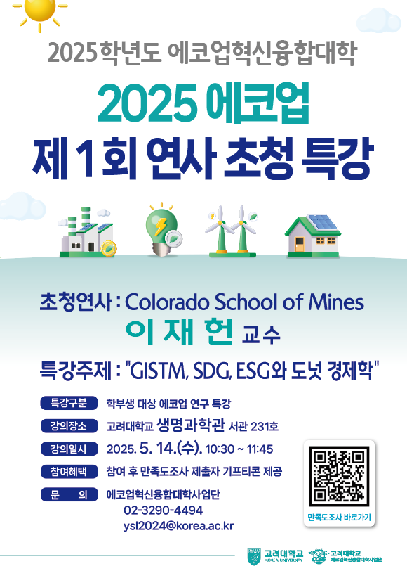 문의 : 에코업혁신융합대학사업단 (02-3290-4494, 4489. ku_ecoup@korea.ac.kr/ ysl2024@korea.ac.kr)