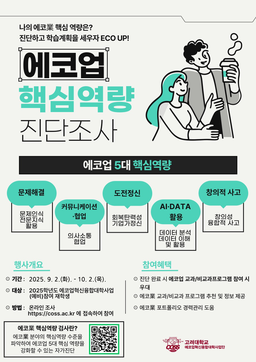25학년도 2학기 에코업혁신융합대학사업 Eco-Metric 핵심역량진단조사 안내