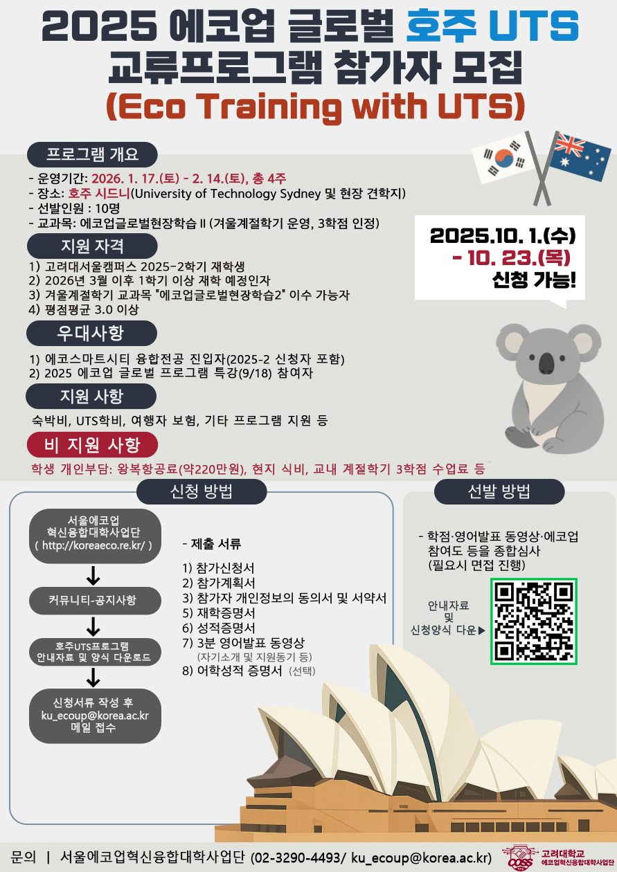 . 프로그램 : 2025 에코업 글로벌 호주 UTS 교류 프로그램 (Eco Training with UTS)