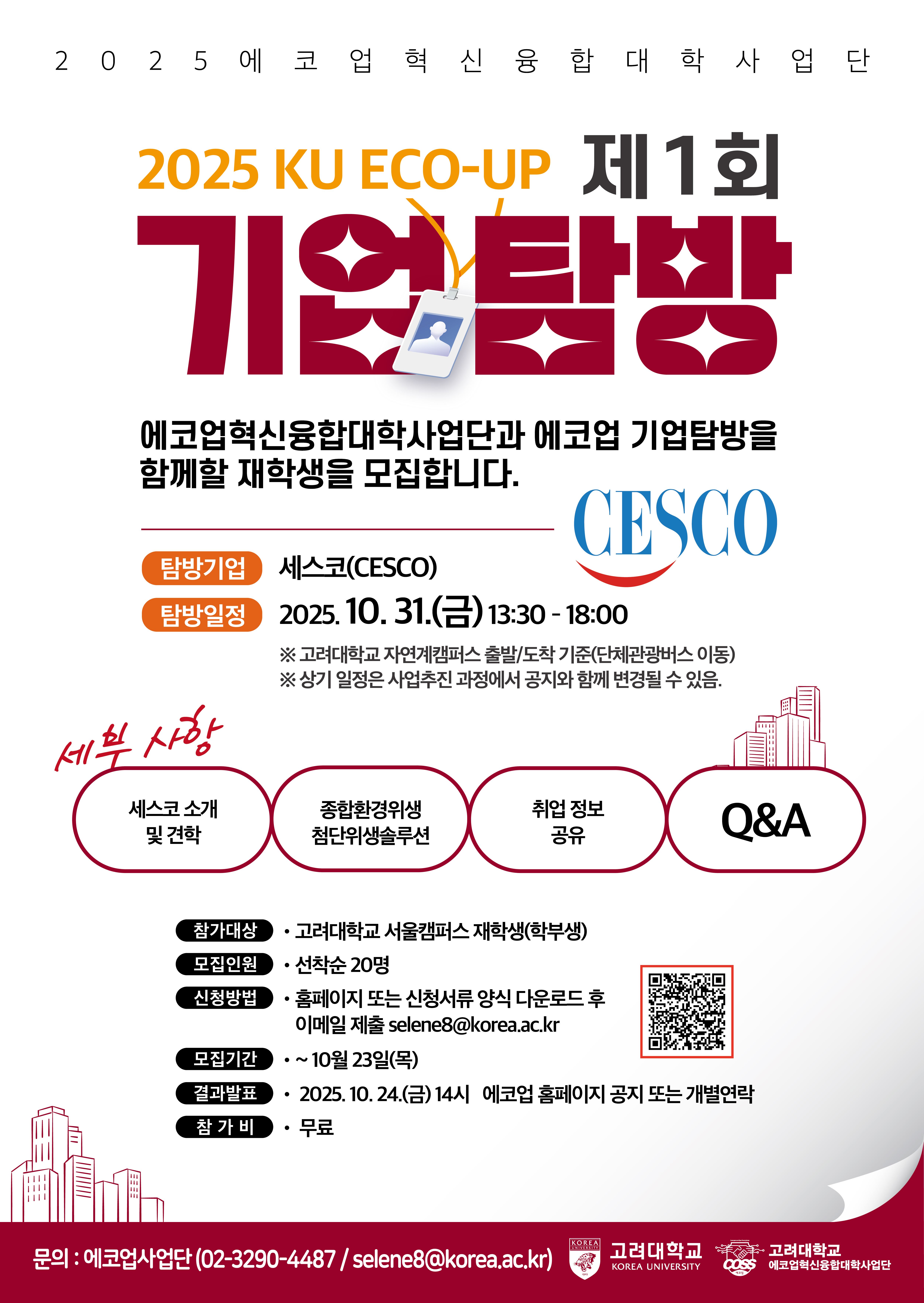 2025 KU ECO-UP 제1회 기업탐방 신청 안내(~10/23)