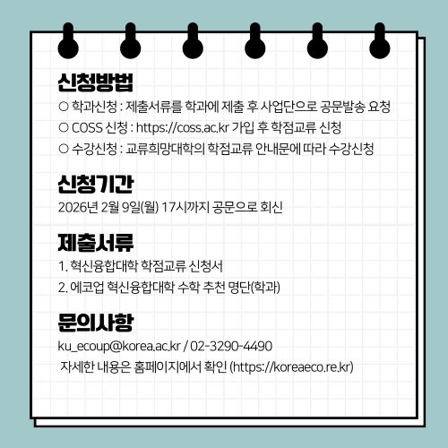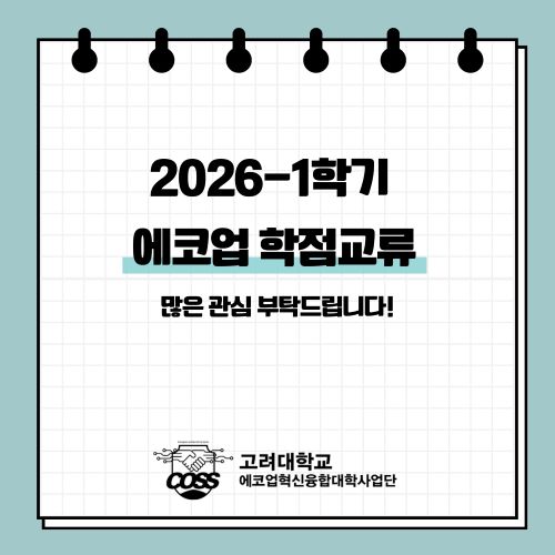2026학년도 1학기 에코업혁신융합대학사업단 학점교류 신청 안내