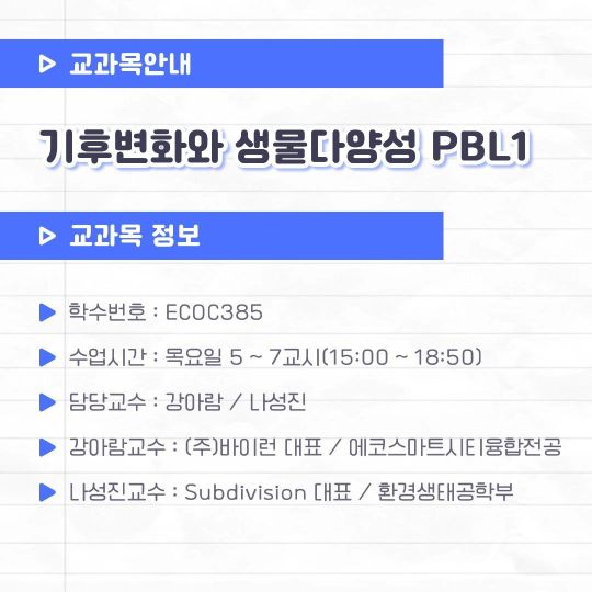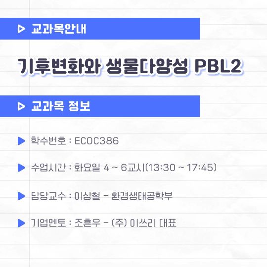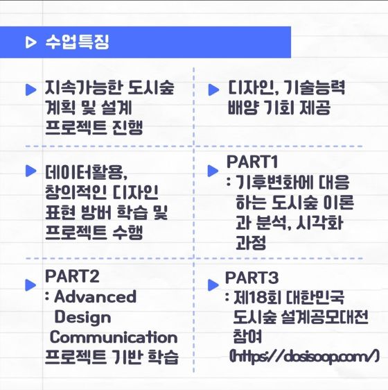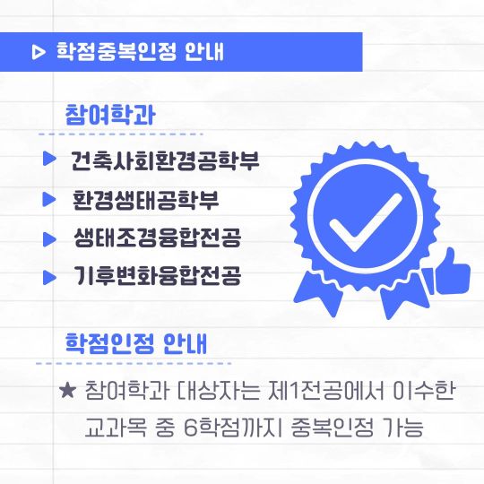 - 참여학과 : ① 건축사회환경공학부 ② 환경생태공학부 (생태조경융합전공 및 기후변화융합전공)